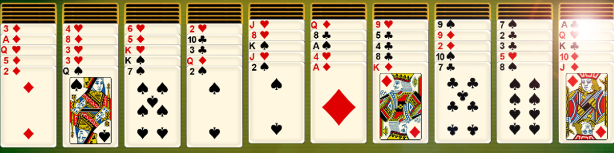 Règles du jeu (Spider Solitaire). Le but du Spider Solitaire est de retirer toutes les cartes du plateau en formant des séquences descendantes de même couleur, du Roi à l'As. Chaque séquence complétée disparaît automatiquement du plateau. Le jeu se joue avec deux jeux de cartes disposés en dix colonnes. Le joueur peut déplacer des cartes d'une colonne à l'autre tant que la carte du dessus de la colonne cible a une valeur supérieure à celle de la carte déplacée (quelle que soit la couleur). Seules les séquences descendantes complètes de même couleur peuvent être déplacées d'un seul bloc. Lorsqu'il n'y a plus de mouvements possibles, de nouvelles cartes peuvent être distribuées, réparties sur les dix colonnes.